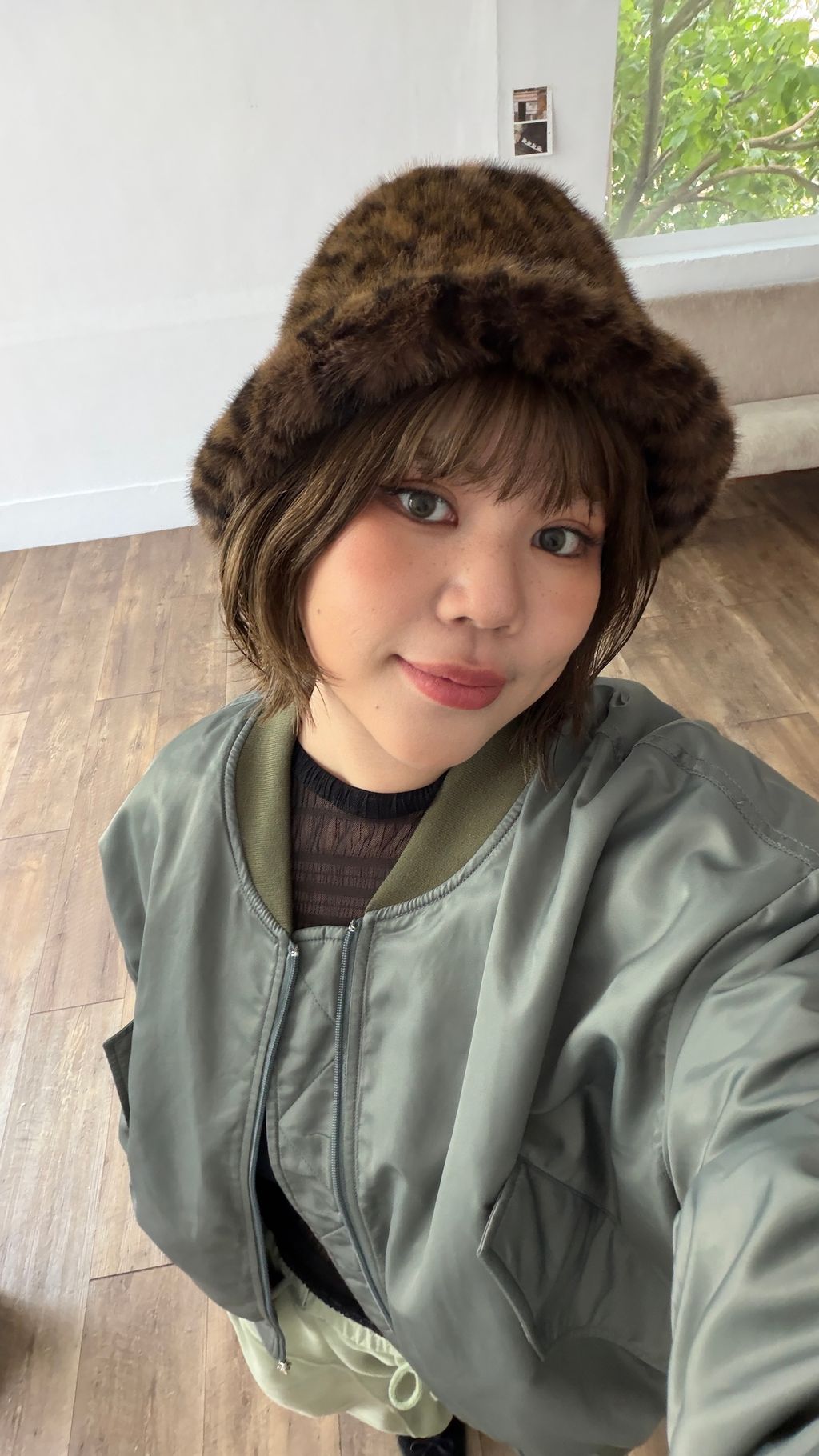 毛茸茸豹紋帽